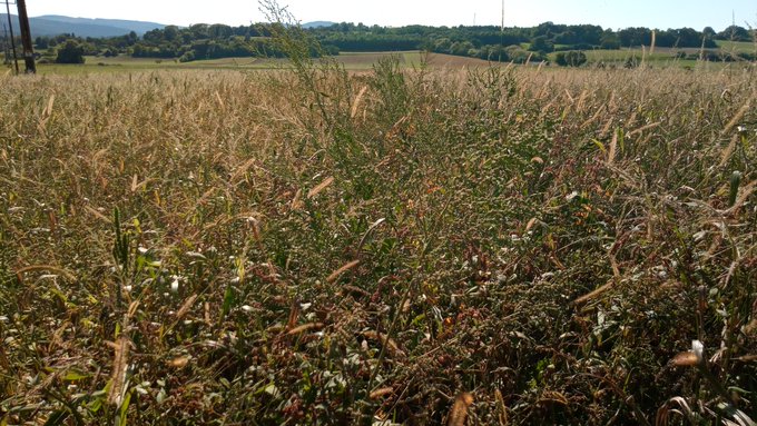 "30% greater variety of flora and fauna" in organic farming means weeds, which cause devastating yield loss. There is an organic soybean field before harvest in Austria. Let me know, what is your yield estimate of this beautiful biodiversity.